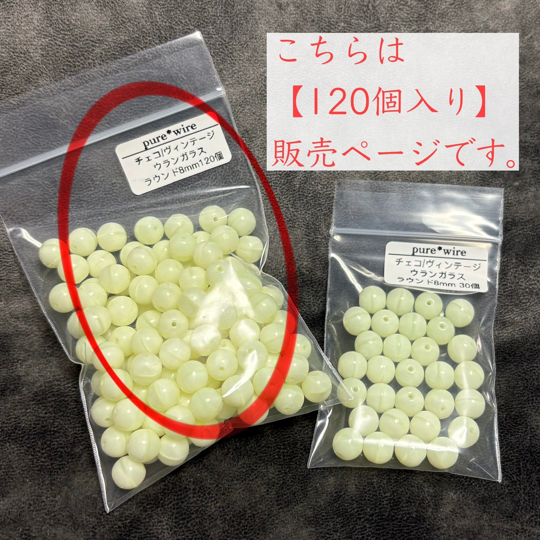 【お得パック】蛍光 ウランガラス ヴィンテージチェコビーズ ラウンド 8mm 120個入