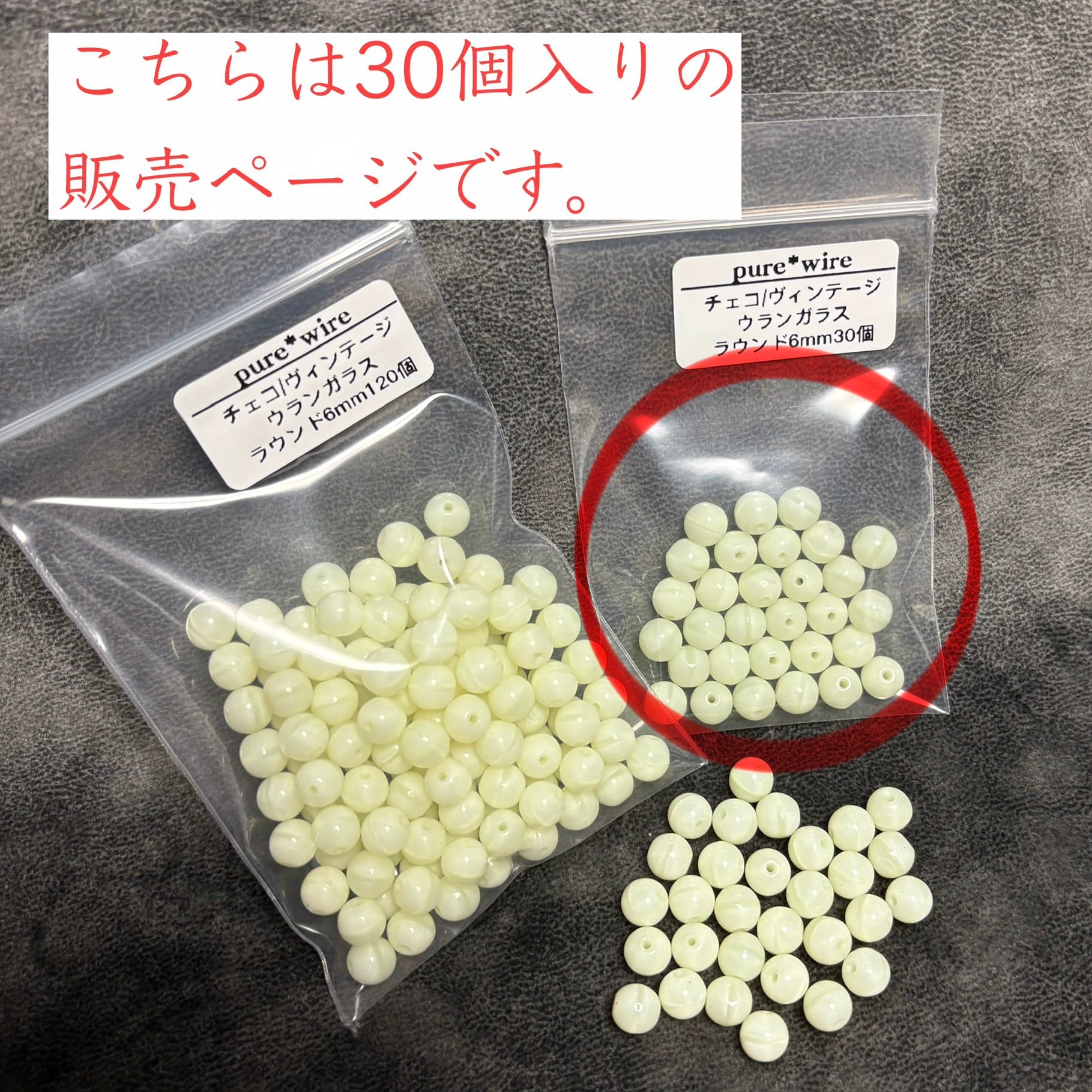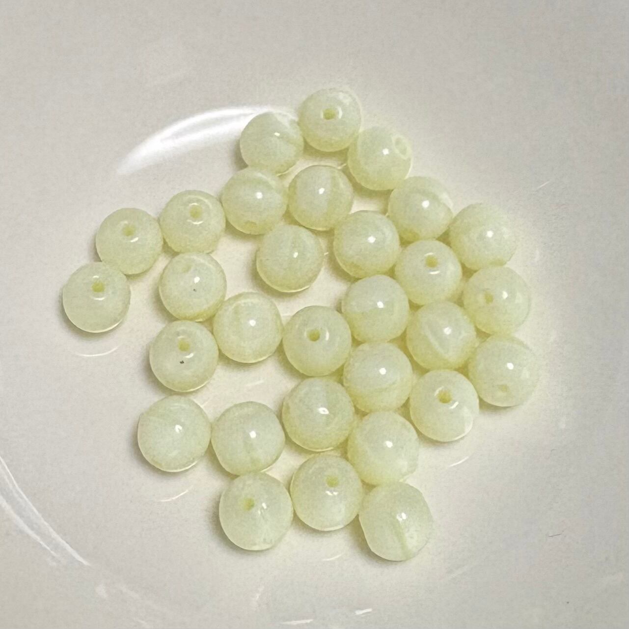 蛍光 ウランガラス ヴィンテージチェコビーズ ラウンド クリーム色 6mm 30個入