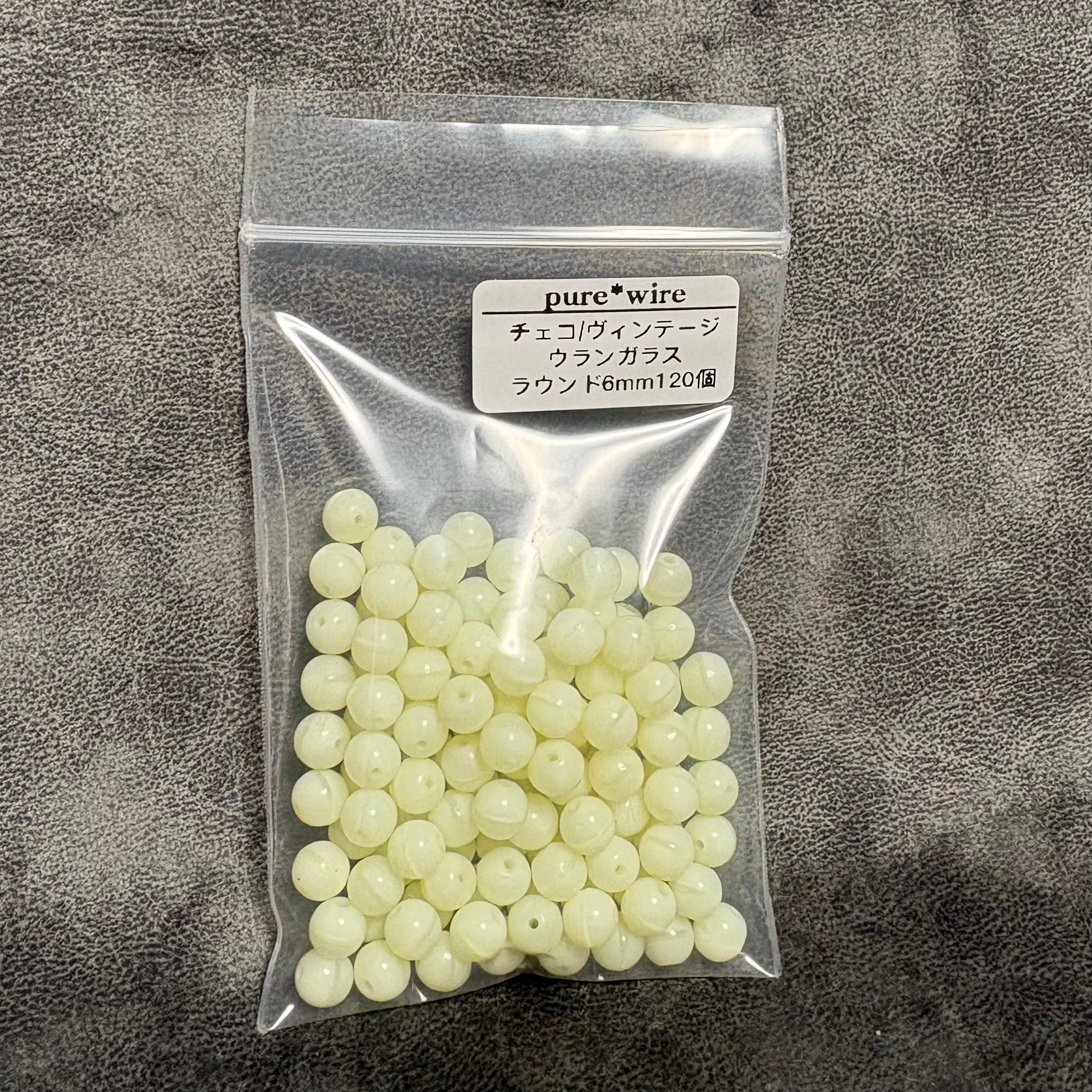 【お得パック】蛍光 ウランガラス ヴィンテージチェコビーズ ラウンド 6mm 120個入